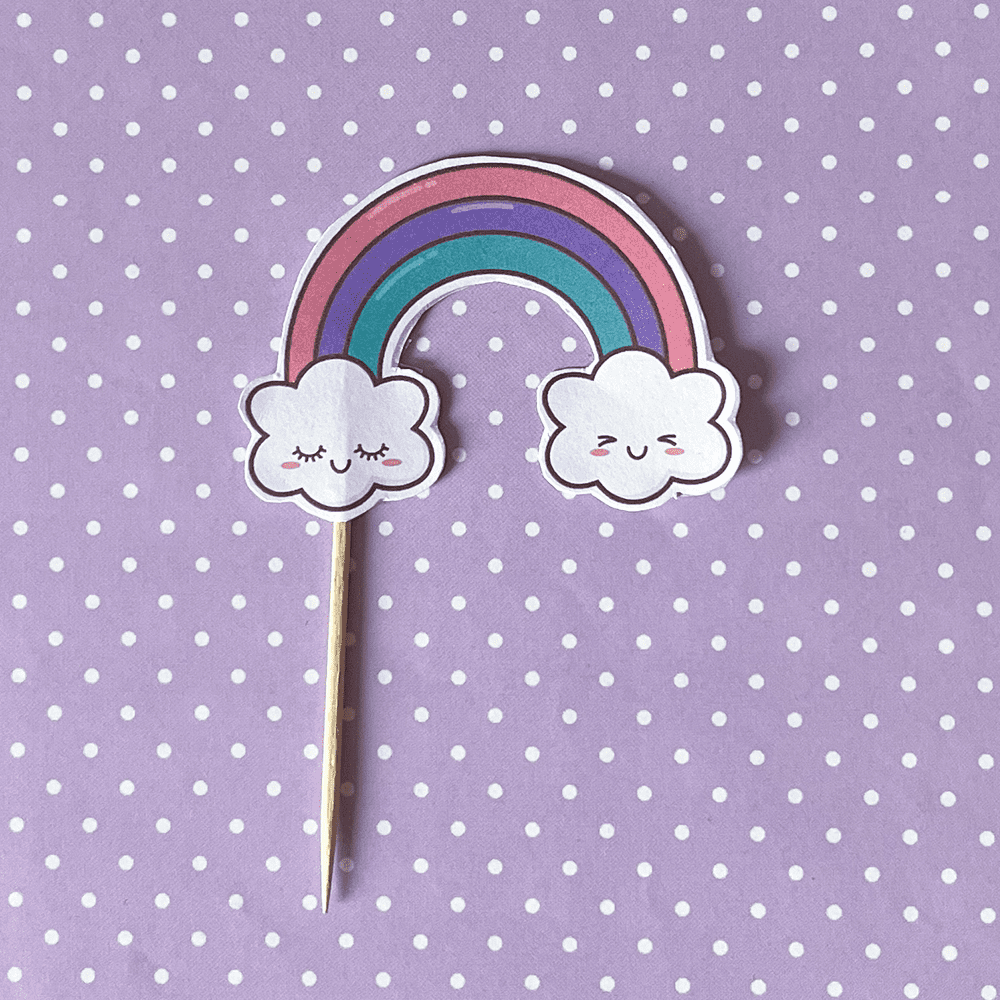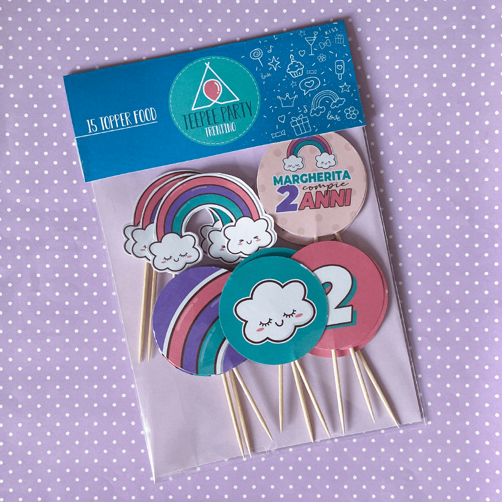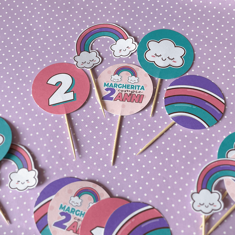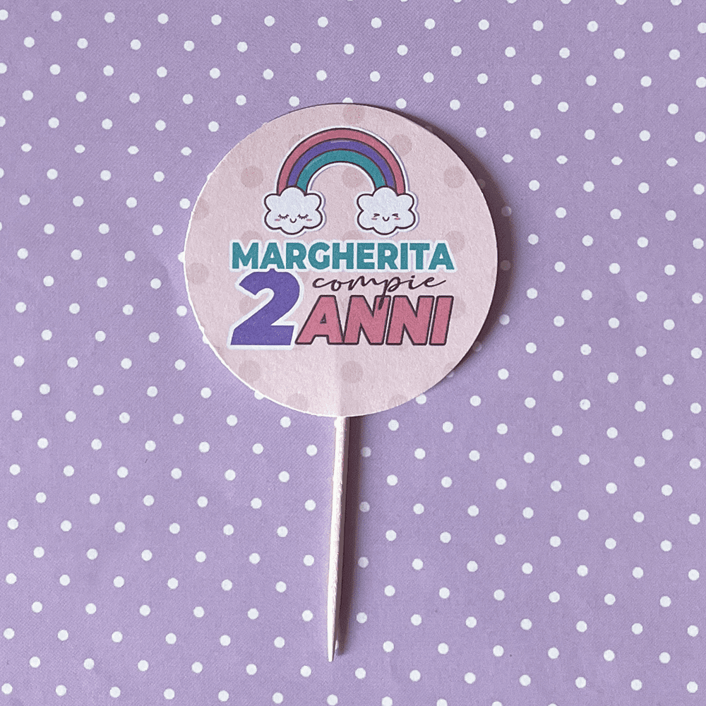 15 TOPPER food - tema "Pink Rainbow" (PERSONALIZZABILE)